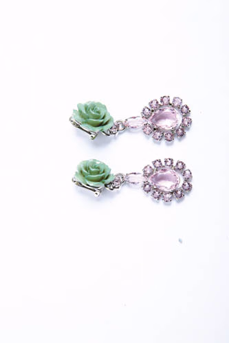 | 奶绿色玫瑰花缀粉红色宝石饰耳环$4,750 |