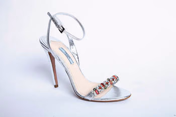 | 银色缀红白色宝石饰高跟凉鞋$10,350 |