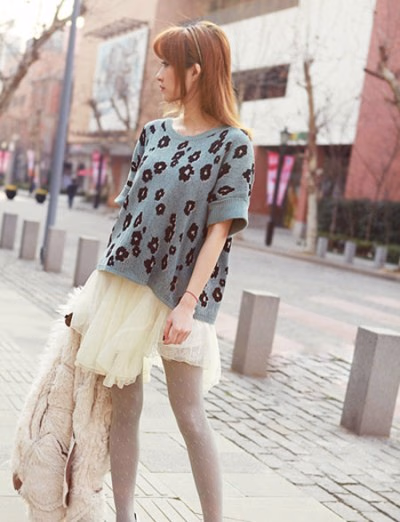 黑色印花宽松针织衫,很宽松的版型,随性舒适。内搭白色纱裙,配上白色高跟鞋,特别有气质。也可以搭配牛仔裤,球鞋利落有型。