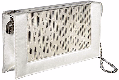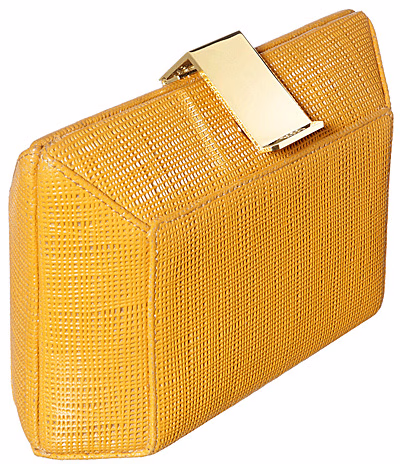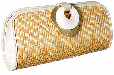 Rodo 2012春夏系列手袋以优雅简约的设计理念贯穿始终。低调的经典色不时穿插明亮的嫩黄、正红色。两款藤编拼皮的手提包极具迷人度假风情。此外,手拿包的设计成为这系列的重头戏。外型上,设计师在基本的造型上加以廓形改良,缎面混搭皮革的方式印证了优雅的主基调,编织的包面款式则更加的精巧。最吸引眼球的莫过于一款嫩黄色手拿包,外部是连结的金属树叶包裹,让整个手袋宛如一件精美的艺术品。