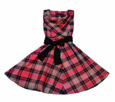 明亮抢眼的彩格tube dress线条简洁,shoulder的略微显露,犹如表演者奔放,前卫的感觉在华丽舞台上展示。腰间的黑色蝴蝶结腰带点缀其甜美又不失大方的感觉。