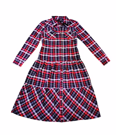 而同一系列的另一款casual 有领彩色英伦小格one piece,bread n butter采用 A字裙身设计,略显瘦感。同样的元素,利用不同形态与感觉,展现了不一样的变化