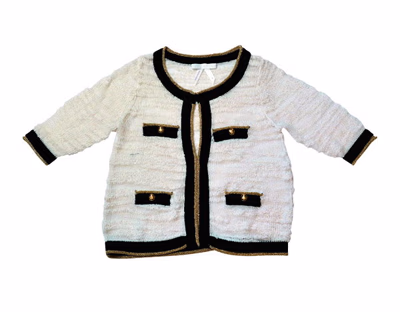 扮演淑女角色,简单明快的设计,黑与米白的强烈对比,恰如其分的相间。4颗金色纽扣起了锦上添花的催化作用,让短款斯文小外套紧紧抓住上班一族的心。