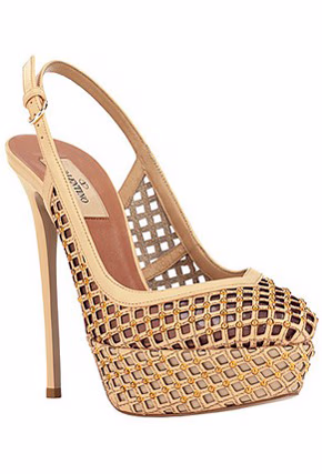 Valentino以其皇室般高贵奢华的风格令女人们为之着迷。最新的2012春夏系列女鞋以镂空为主要设计元素,含蓄朦胧的小裸露是性感的绝佳法宝。另外,透视蕾丝鞋面的麻编底平跟鞋也是春夏休闲生活必备的性感小物。