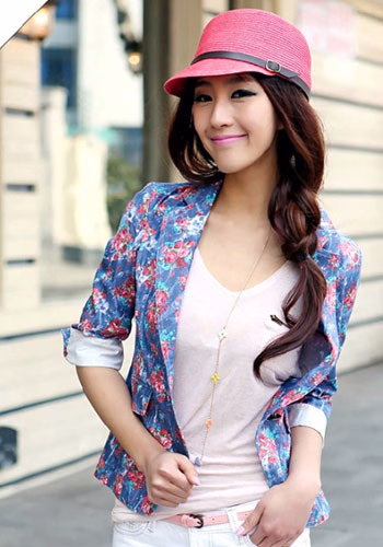 牛仔印花雕花扣西装,大花用在牛仔外套上的确是出奇制胜的,一粒扣的西装板型很显瘦,裁剪也很好。