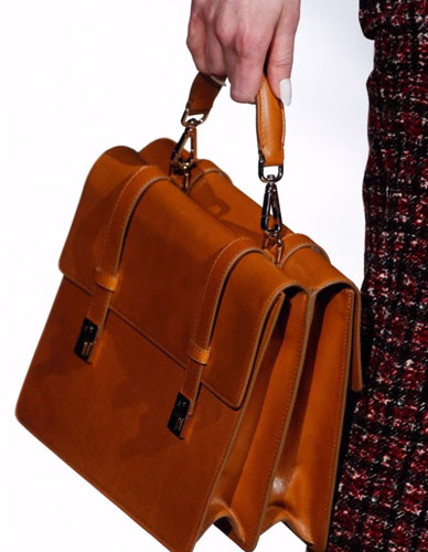 这款包型由挎包演变而来,但融合了男性公文包的元素。传统挎包细节依然保留,如手柄设计和斜挎可拆卸肩带等。硬朗鲜明的方形轮廓以及超大胆翻盖和锁扣等细节保留了男性风格样式,而传统的棕褐色皮革则呈现出前几季盛行的 70 年代复古风格。