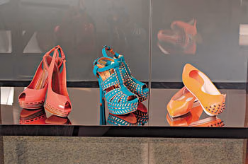 Animal Print之外,来到充满生气的季度,Shocking Color亦是今季的热门选项,Sebastain、MCQ系列鞋履,设计一向充满前瞻性,前者满布了牡丹、玫瑰和柑橘各种不同的花果颜色,衬以柔软的天鹅绒和闪亮的漆皮质料,款式清新夺目。而MCQ则以樱桃色、浅粉色、天蓝色和铁青色,衬托黑色和白色,鲜明又别具个性。