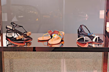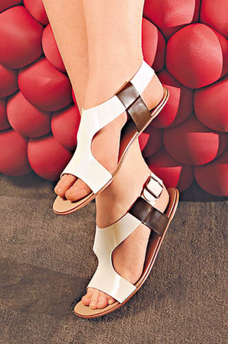 夏日必备的凉鞋款式,近年以船及人字拖设计备受热捧,所以Etro及Giambattista Valli亦以凉鞋款式作主打项目,配上皮革、闪石、民族色彩、金属物料等细节作点缀,令一贯平凡的鞋履变得更耀眼。