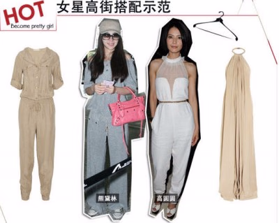 熊黛林和高圆圆分别给我们展示了不同风格的连体裤搭配。一个轻松休闲看起来活力十足,刚好是春天出游的绝妙装扮。另一个选择蕾丝抹胸连体裤,充满了小女人的性感,白色点亮了全身,又最能展现独到的品味。