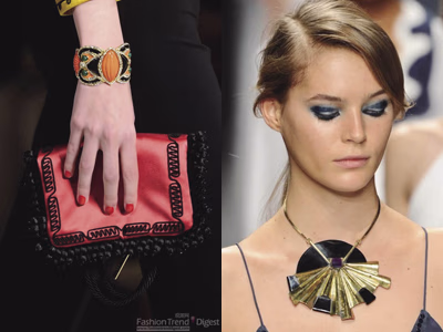 部落风并非是新鲜的趋势了,几季以来,其总是以推陈出新的姿态盘踞于时尚的中央,尤其在春夏季。2012春夏的部落风依然强劲,而最新的潮流体现为两大趋势:一是将部落造型与装饰艺术相结合,尤其是上世纪20年代的迪考艺术风格,而装饰性几何图案在解构中融合了部落风格,具有强烈的装饰意味,同时也代表着下一季配饰非常商业化的发展方向;另一趋势是强调部落风格中质朴的工艺和精湛的手艺,并以更为传统的方式进行诠释,毫无疑问,其带来的结果是低调背后的极度奢华。