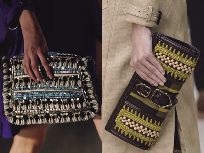 部落风格从来离不开原始的编织工艺,尤其是下一季手工感成为趋势重点。贝壳与串珠细节的结合,编织技术正以前所未有的精彩演绎着盛夏部落风的趋势。