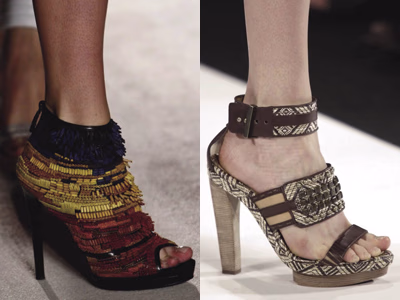 无论从部落风的延续性还是商业性上来看,部落风格凉鞋都将成为夏季的关键性鞋品。凉鞋是绝好表现部落风格细节、色彩或者材质的载体。