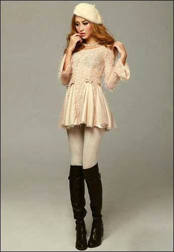 胖美人穿衣宝典:雪纺连衣裙+丝袜显瘦又时尚