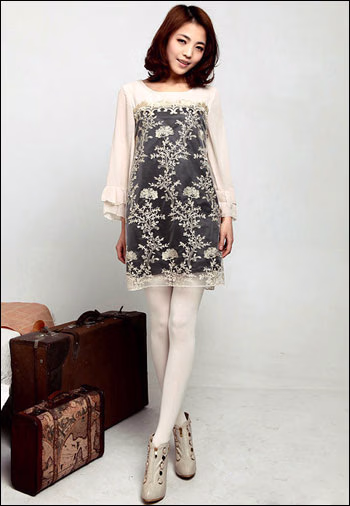 复古风雪纺拼接蕾丝绣花荷叶长袖连衣裙,以叠穿的方法增添多彩的丰富表情令人垂涎,迷人得恰到好处明快的颜色能带来一整天的愉悦。