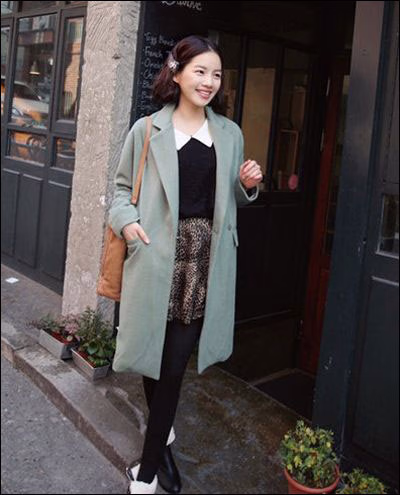 米白色毛呢大衣,宽松的版型,清新迷人的色彩非常淡雅大气。小翻领的款式更有时尚感。内搭黑色打底衫下穿裤袜,短靴魅力十足。