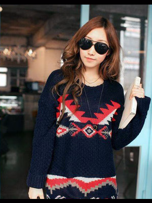 复古部落式的花纹图案美得惊艳且很有喜庆感,针织面料春天穿着保暖又大方,搭配紧身裤和高筒靴效果尤为出众。