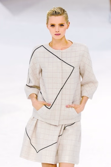 简约主义成为一个主要趋势后,简约型的几何结构也成为大热元素,今年被style.com评为2012春夏最杰出设计奖的Balenciaga,再次推出结构感和几何感都十分强烈的系列,有棱有角的衣服犹如盔甲护航,让人多了份趾高气扬的自信。而一向勇于尝试新风尚的CHANEL,也将简约几何主义放置在最新作品之中,我们可以看到其春夏系列中,大胆地将几何结构图与暗格纹相结合,奉出颇有鲜明后现代意味的套装,风格焕然一新。当然,一众粉丝也等待着更多的惊喜降临。