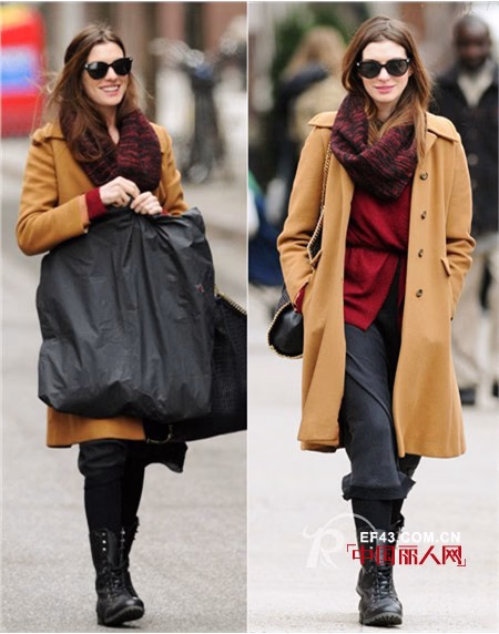 时尚解析:虽然还是大衣、围巾,但已不是寒冬的那般严实,红色的内搭和暖调的外套迎接春天的到来。