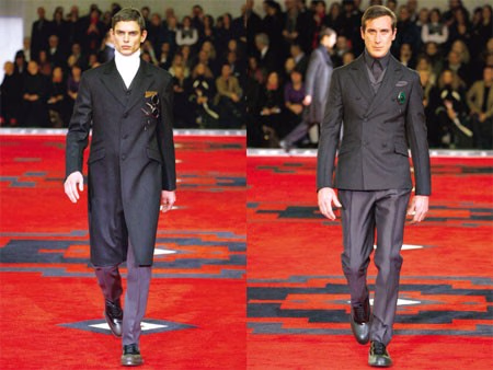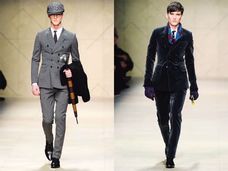 本季米兰男装周有一个特别明显的标志,那就是2012/2013秋冬将是西装的天下。为此,所有的设计师都大张旗鼓地展现他们对于这种男性衣橱必备品的见解。军装作为都市革命的衍生品,在男人衣橱中代表了安全。这意味着创意总监克里斯托弗·贝利(Christopher Bailey)不仅可以利用博柏利(Burberry Prorsum)军旅遗产和高超的缝纫传统,还可以通过遗产翻新从传统形象中跳脱出来。他这次所为取得了惊人的效果。