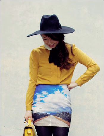 娇小女生穿衣很重要的一点就是下身服装尽量要以短款为主,这样能够露出较长的腿部线条,从视觉上拉长身高。基本款式的短裙已经不能满足混搭高手们的胃口了,带有画面感的短裙现在成了热门之选。