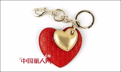 GUCCI 辣椒红搭配金色爱心钥匙圈