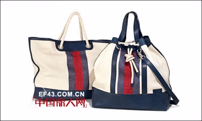 (左)GUCCI蓝红蓝织带印染帆布tote包 ( 右)GUCCI蓝红蓝织带印染帆布束口袋