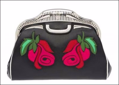 Prada 2012春夏手袋:黑色饰玫瑰图案手包