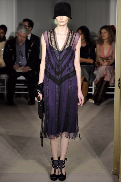 Alberta Ferretti是意大利著名的设计师,她被誉为“雪纺皇后”,其经典设计在于扭转褶皱、围裹和悬垂感的裁缝技巧,以及那“和谐统一” 的风格鲜明,其设计充满浪漫气息,代表作是希腊长袍式设计的曳地晚礼服。近日,这位“雪纺皇后”在米兰为我们带来了她的2012早秋系列新品秀。本季的女装,Alberta Ferretti和上一季一样都带有“爵士时代”的气息。那钟形的女帽,厚实的大衣,都带给我们上个世纪的感觉。还有那黑色的亮片裙装搭配上针织大衣,在让我们体会到时尚的同时又带有保守的气息,成为本场的最大亮点。(翻译:徐思)