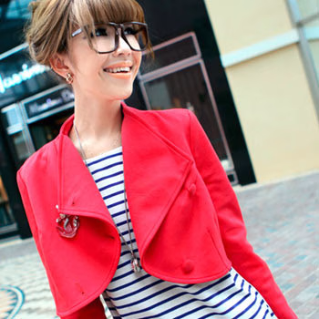 一款充满舒适魅力的韩版超短外套,做工细腻独特,色泽均匀的面身设计,唯美俏丽。斜扣领的设计,简单大方,散发轻松随意情怀,可搭配多种风格穿着,上身效果超棒,柔美舒适,随意个性。