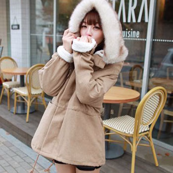 可爱度满分,超萌的毛毛翻领潮味十足。略微宽松,但是上身也不显臃肿。袖口有毛毛可以翻边,更衬托出可爱气息。