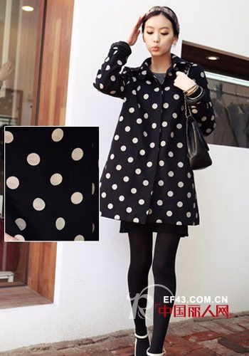 秋冬季甜美波点夹克,内里一直到袖子都有,波点图案,有显脸小的效果。H直筒版型,简洁自然。