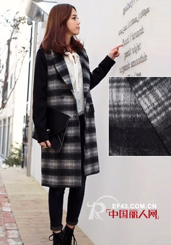 高端质感!高端气场。灰黑色的格纹配色很有格调的感觉。自然修身的垂坠版型。毛呢材质,厚度适中,保暖性很好。