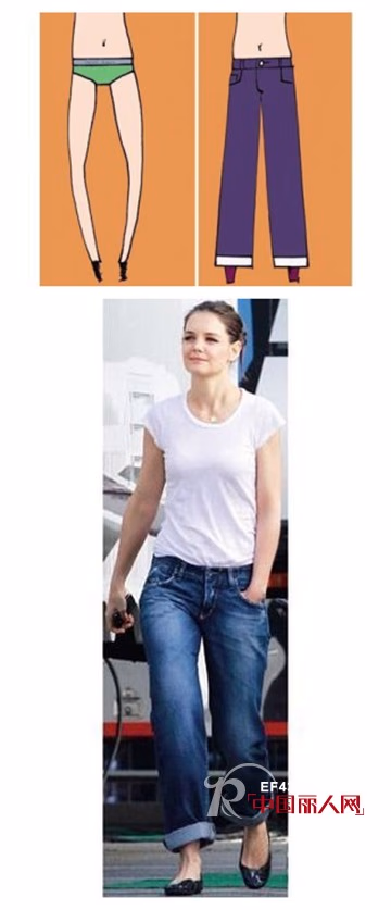 O形腿的人要注意在裤管上尽量使双腿看起来聚拢一些,所以适合直筒裤型。如果腿足够细的话,那就完美了,因为这种裤型也是近几季最流行的。