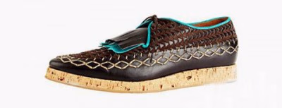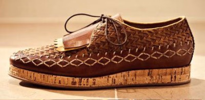作为英国高端品牌博柏利珀松(Burberry Prorsum)2012即将推出的春夏季系列,这款厚底编织皮鞋一反博柏利(Burberry)文雅的格子形象,特别采用具有浓厚民族特色的编织皮革作为鞋面,并用反差感强烈的木质大底和天蓝色包边,让这款皮鞋拥有的了奇特的设计感。