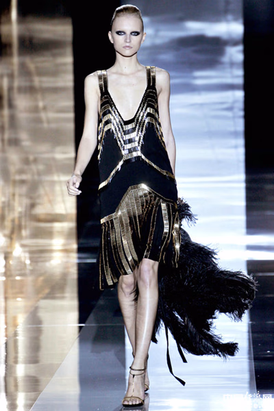 在2012春夏国际时装周的秀场上,20年代大放异彩。说到20世纪20年代的风格,可用两个关键词来形容,一个是爵士乐时代,一个是艺术装饰。前者体现为感官享受,后者着重于艺术设计形式。