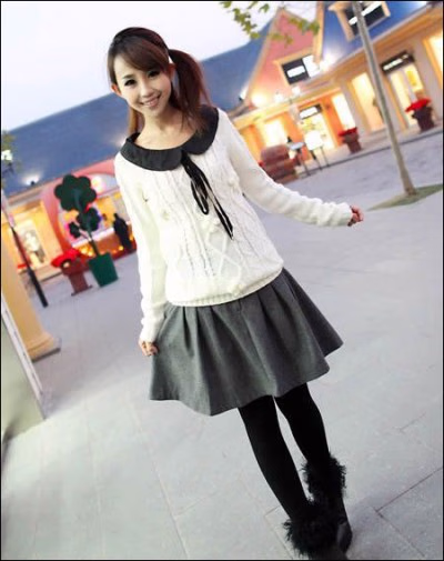 纯白色的毛衣,立体而时尚的修身剪裁,让身材更加的纤细立体,衣身上精美的菱格图案,显露出优雅的淑女风范,精致的小翻领,更加的俏皮,搭配小尖头的短靴,皮草的点缀,更加的高贵。