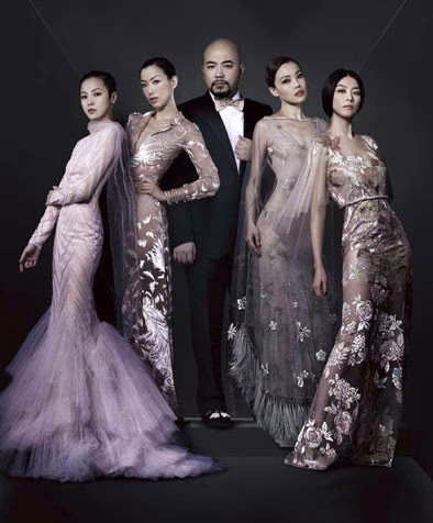四大天后的合影不止一张,这张最早在演唱会发布会上露面的照片,同样以四大天后簇拥黄伟文为形式,何韵诗身着Gucci透视礼裙、郑秀文与陈慧琳则选择了Yves Saint Laurent系列,而容祖儿大胆演绎了Chanel拜占庭系列的全透视装,相当惊艳。