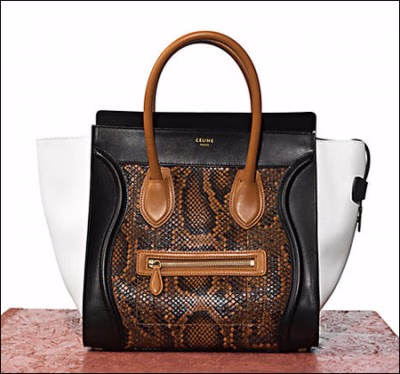 CÉLINE这次的演绎来得含蓄而永不过时,除了一般的全小牛皮款式外,也有小牛皮搭麂皮等多种拼接款式,配合实用性高的颜色,黑、啡、深红,还有跳跃的玫红色,低调的草绿色、宝蓝色,一如以往,CÉLINE 在这个季度的设计又成功赢取了大众的心。