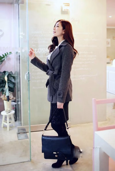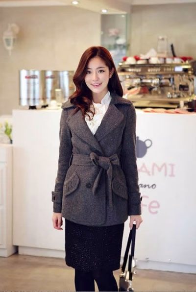 收腰设计,简约有型的毛呢短大衣外套。高腰收腰的设计,收腰的板型完美显瘦。搭配度很高,OL一族必备哦,通勤装也很合适。