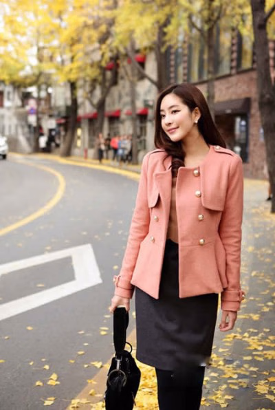 圆领剪裁,简约双排扣收腰短呢外套。气质感十足。收腰显瘦的板型,完美衬托出气质感。漂亮的粉红色甜美迷人。