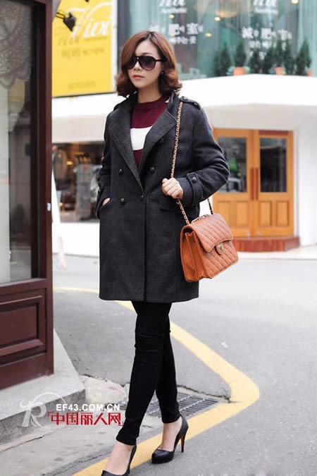 深灰我的那一段感觉,经典的以排扣立领长款呢大衣,流畅的线条,时尚的款式,再加上个性的肩章,显得很有帅气感,面料细腻而舒适。