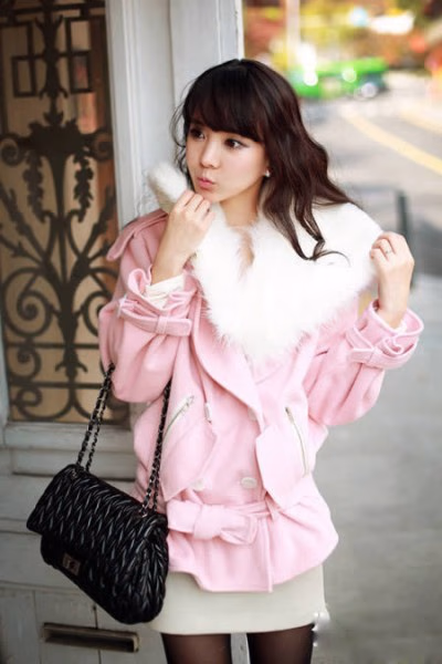 粉嫩嫩的颜色给这个季节里增添不少的活力感,挺括的面料,让衣衣更为有型,简约而大气,大大的毛毛翻领,即增添时尚感,又保暖哦。