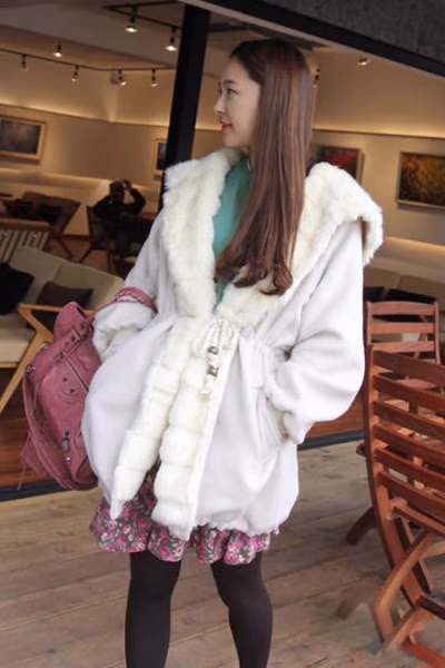 有一种气场感,喜欢这样的淡淡的颜色,相反的我就不喜欢黑色,这样会让黑暗更暗,厚实的毛毛,让穿着起来特别的温暖,宽松板的设计更有条件的遮的好好的。