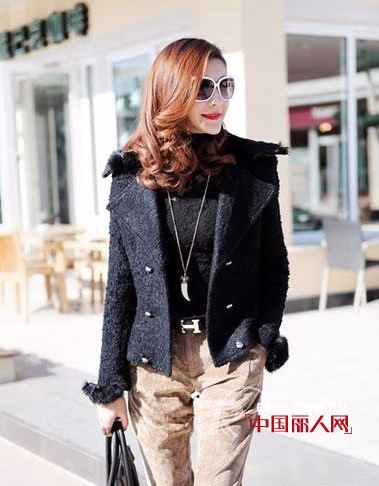 毛呢机车服与皮草的结合,可谓混搭的经典色彩相近,质地同样舒适的毛呢与皮草,奠定了整件外套和谐的基调然而街头范十足的机车款式与晚宴上的常客——皮草形成鲜明对比让整件衣着呈现出独特的风味,既高雅,又随性。