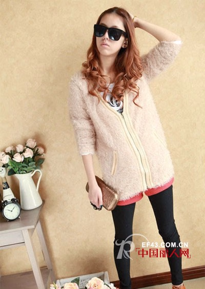 毛毛绒带来暖洋洋的蓬松质感,宽松款,适合更多身材,朋克味道的金属链镶嵌,带来金属质感,敞开穿或者系腰带都超美。