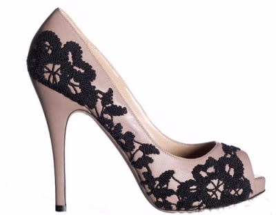 黑色与蕾丝搭配在一起,果然是性感梦幻的代言词。这款鞋子,搭配今年最为另类的黑色婚礼礼服,也是非常不错的选择。