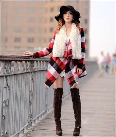 鲜艳的格纹色彩,有点可爱的苏格兰味道,厚实而挺括的面料,搭配上随意的剪裁风格,帅气十足。纯白色的大毛领的装饰,给人以非常浪漫的性感气息,穿着起来非常的保暖。