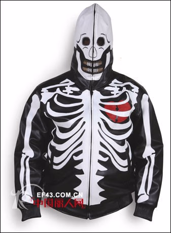 对骷髅战斗衣(Skeleton Bomber Jacket)来说,酷不是问题,问题是你敢不敢穿。黑色的外套上是惨白的骷髅,给人以不寒而栗的森然之感。尤其是头部,可谓其设计的点睛之笔,全包围的头罩上是黑得似乎看不到底的眼洞,眼洞的下方则是同样惨白的牙齿,一切都搭配得堪称Perfect……