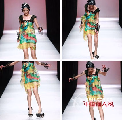 昨晚的秀场,为了配合华美的高级成衣,祁刚专门设计了多款细高跟的美鞋。不过也因为过于纤细的跟,加上许多鞋子号码并不合适,上演了一幕惊险的摔倒秀。给秀场增加了一份有惊无险的小插曲。