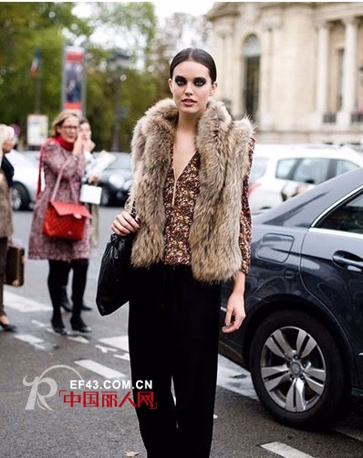毛茸茸的单品每年都会带起一股潮流旋风,那超温暖的感觉以及被拥着的茸毛触感,是不是超令你心动的呢?这款皮草背心搭配碎花衬衫,下穿长裤,潮范十足。